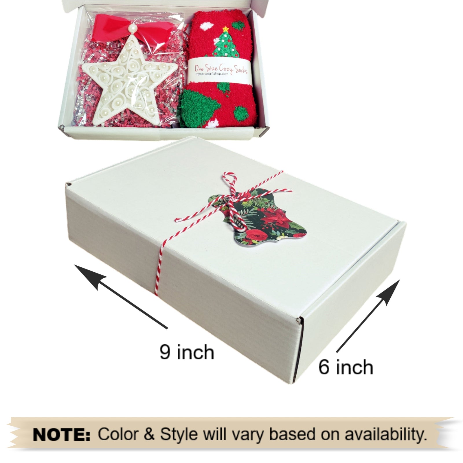 A festive gift that’s ready to send or share! Each set includes one pair of Christmas socks and a holiday ornament, neatly packed in a sturdy mailer box. Perfect for holiday gifting, seasonal displays, or ready-to-ship presents for friends, family, or coworkers.