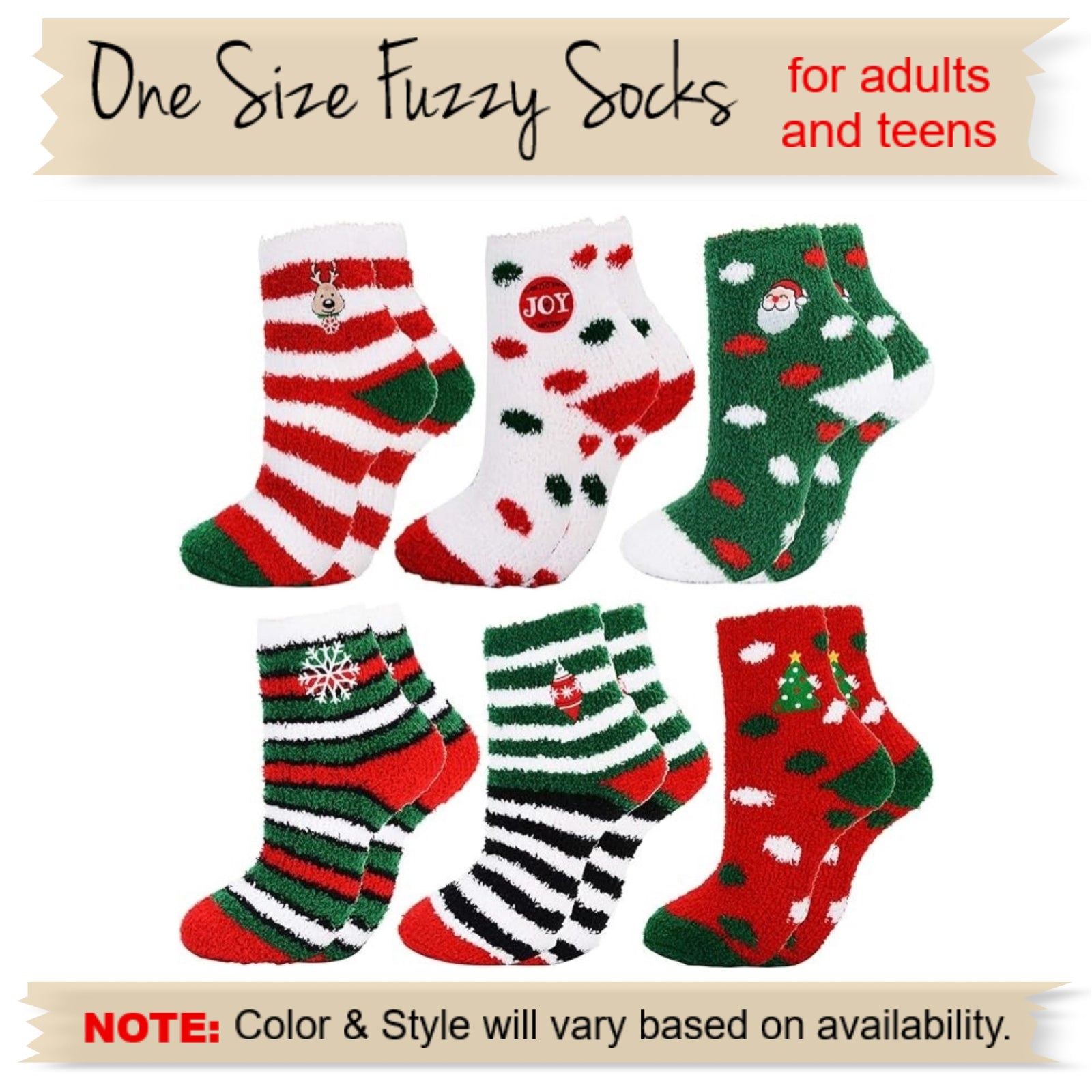 Includes: 1 pair of fuzzy socks, 1 ornament