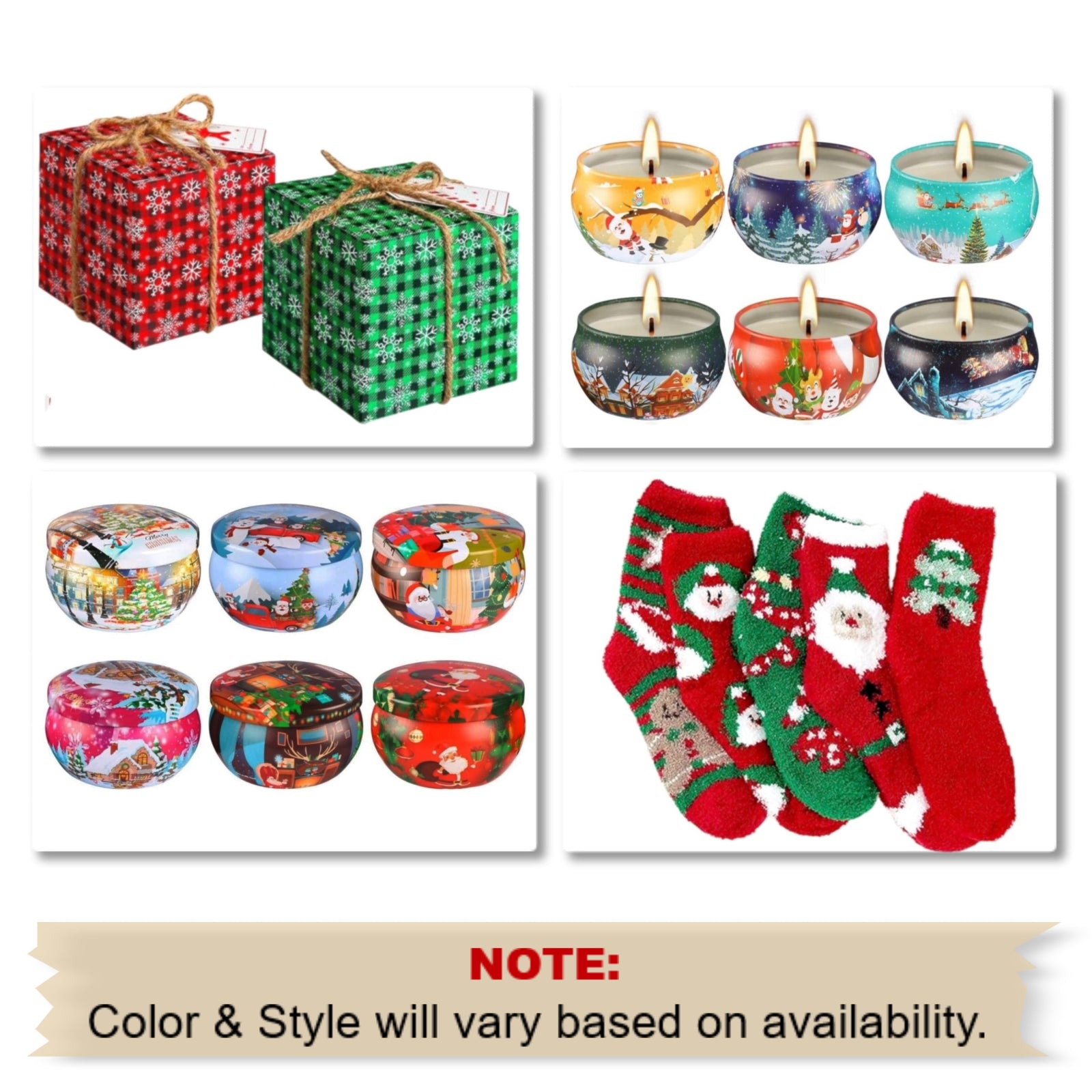 This ready-to-gift mini set includes one pair of soft, holiday-themed socks and a scented candle, beautifully packaged in a plaid gift box with natural rope twine and a gift tag. Perfect for men and women, it’s a thoughtful choice for seasonal gifting, stocking stuffers, or just because.