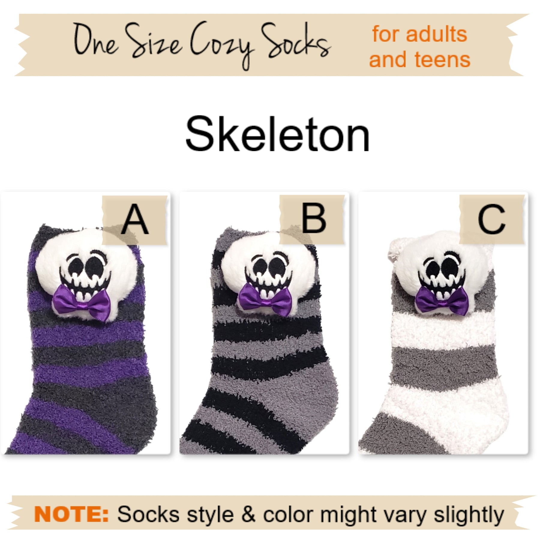 These cozy Halloween fuzzy socks are made exclusively for adults and teenagers! Each pair features a cute plush Halloween character attached to the sides — adding a fun touch to your Halloween loungewear or costume.
